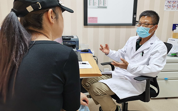 张鹏给患者解答疑问。新京报记者 戴轩 摄