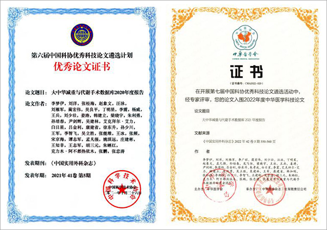 我院牵头的《大中华减重与代谢手术数据库2022年度报告》再次入选中国科协优秀科技论文遴选计划TOP10