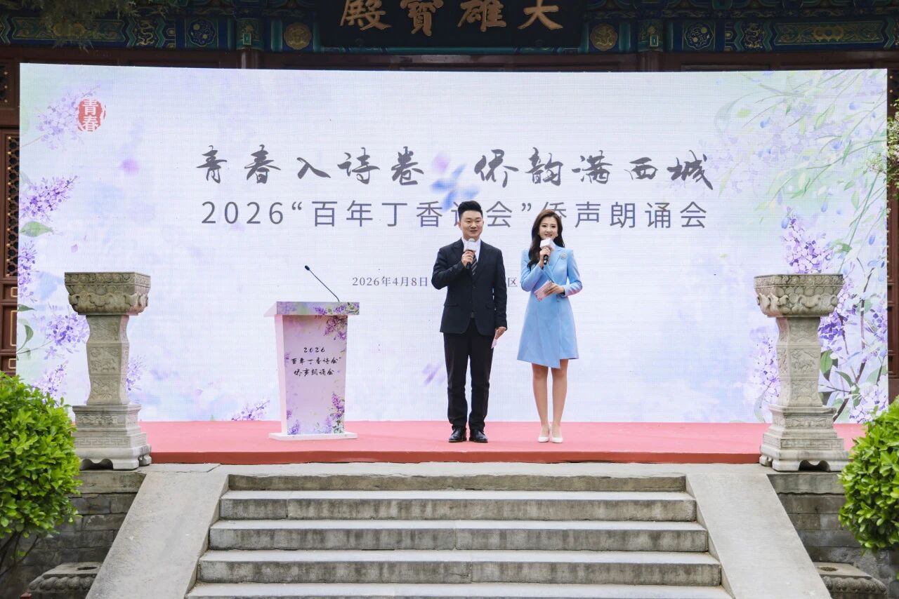 本次朗诵会由西城区海联会、区侨联、牛街街道主办,十月文学院承办,近百位海内外侨胞代表、归国留学人员、青年学子齐聚丁香树下,以诗为桥、以声传情,共赴一场跨越山海的文化之约。活动分为赤子归心、侨界荣光、同心启航三个篇章,融合沉浸式表演、双语诵读、民乐配乐、诗词飞花令等多元形式,让观众在古寺花影间感受中华诗词之美与侨界赤子之心。